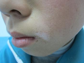白癜风经过扩散就会形成泛发型,这时候白斑会非常显眼,而且根本就无法进行忽视。皮损面积上看,只有白斑面积超过体表一半以上。发病面积大是泛发型白癜风主要特点。白斑会出现连成片的情况,而且随着白癜风的发展,不同片的白斑还会出现合并,形成大面积褪色块,严重时就只能看见零星正常的皮肤散落于白斑之中,那时候皮肤景象很难看。